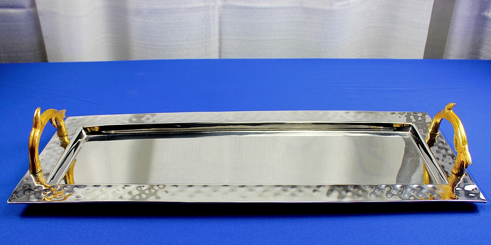 10″ x 26″ Stainless Tray w/ Gold Handles