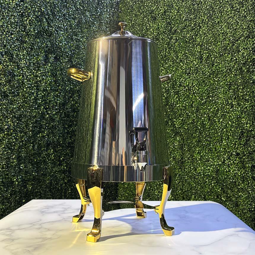 100 Cup High Polished Stainless Samovar W/ Gold Accents