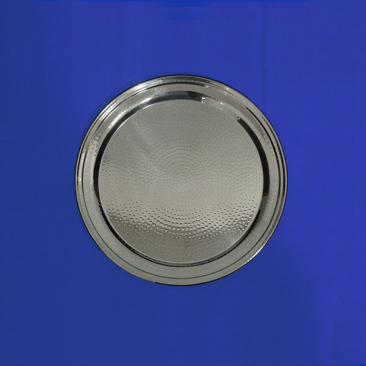 14″ Round Hammered Polished Stainless Tray