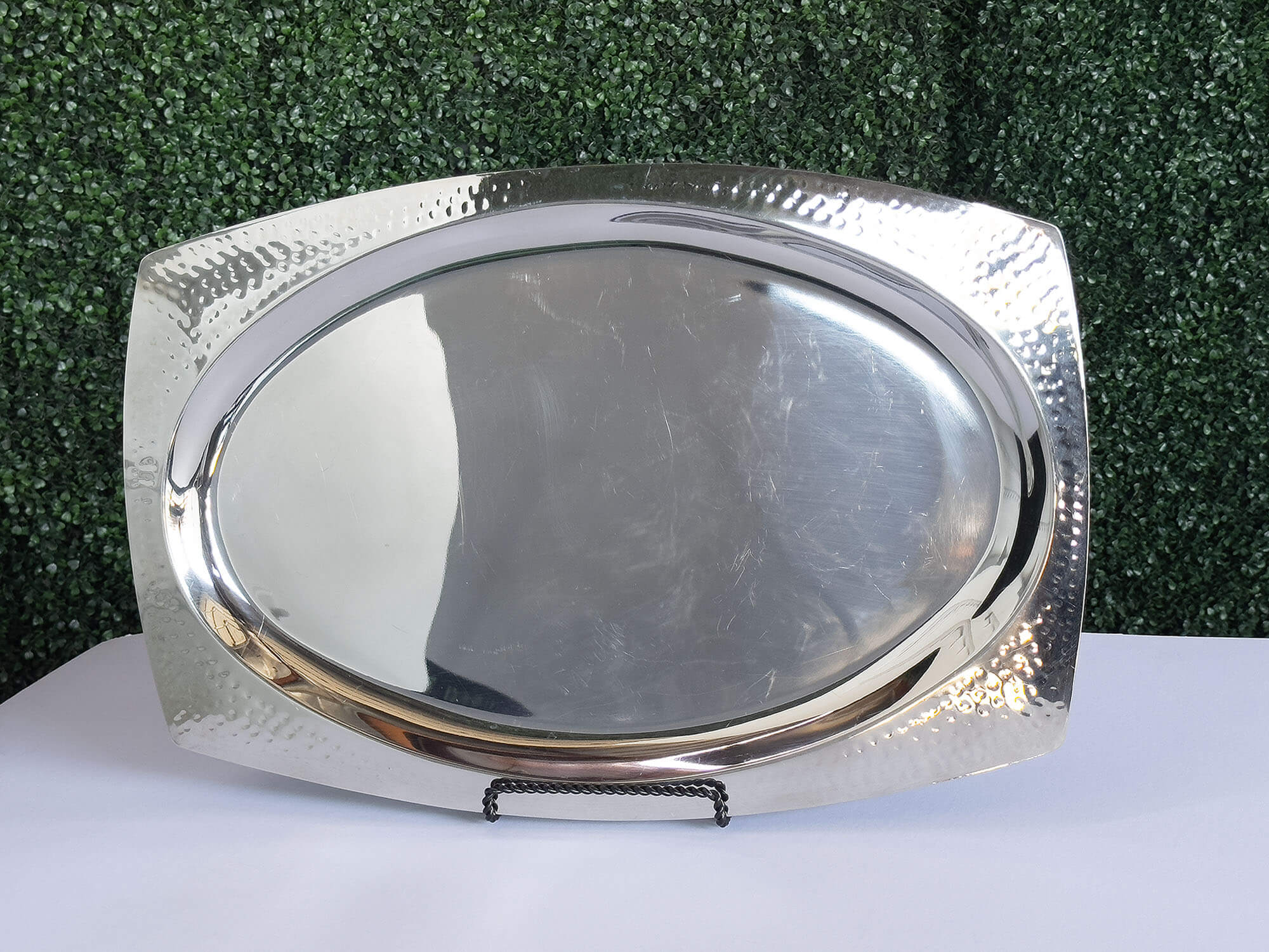 14" x 22" Oblong Hammered Stainless Tray quantity
