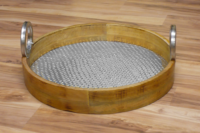 15″ Round Wood Tray w/ Aluminum Insert