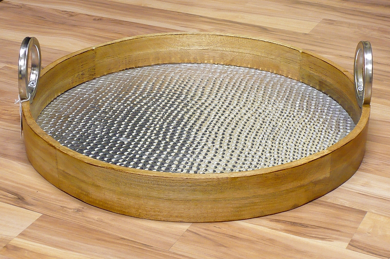 19″ Round Wood Tray w/ Aluminum Insert