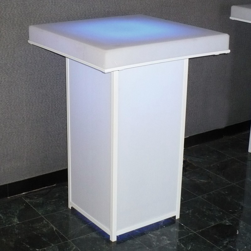 Frosted Plexiglass Furniture includes LED lighting that can be set to 64 colors. Available with plug-in or lithium battery power.