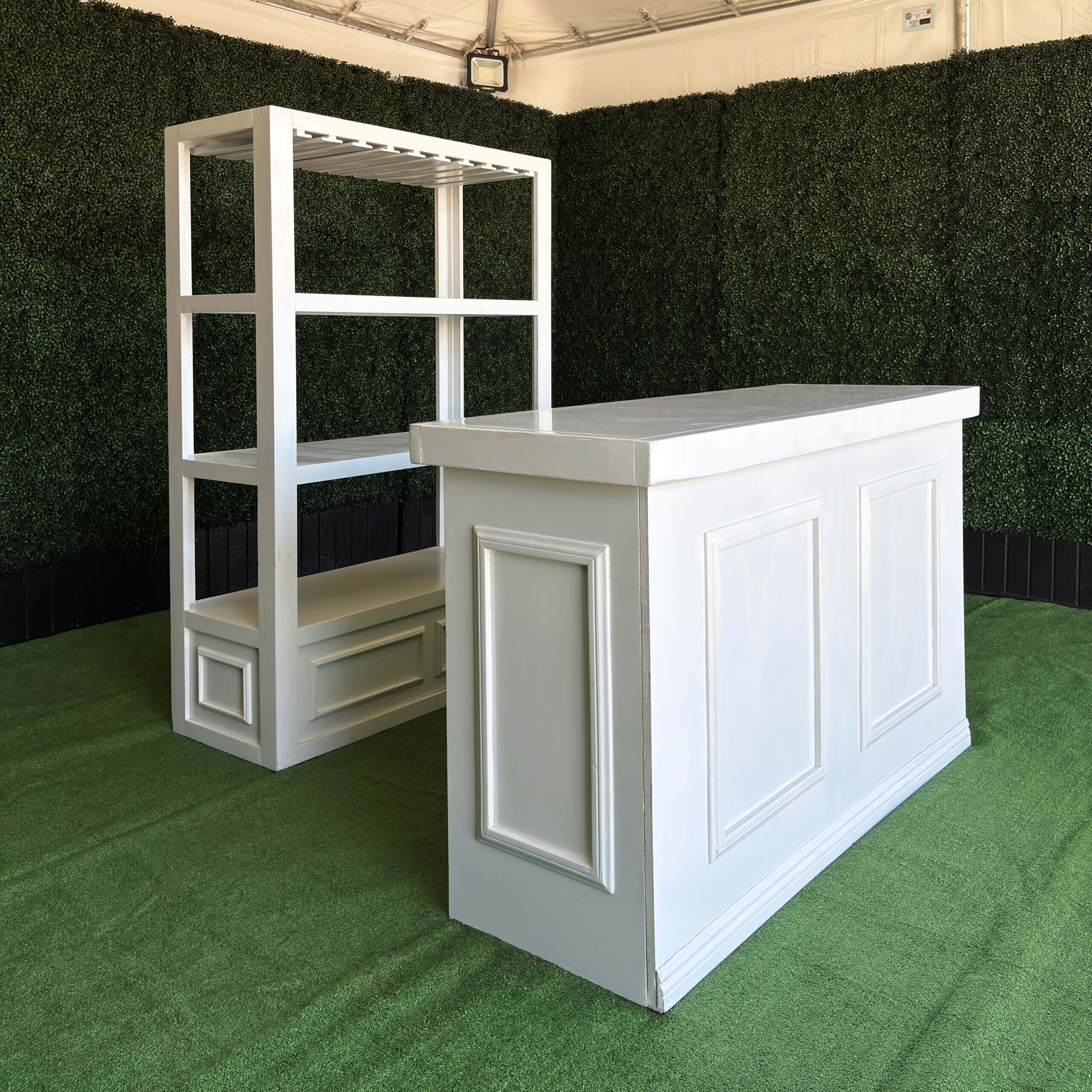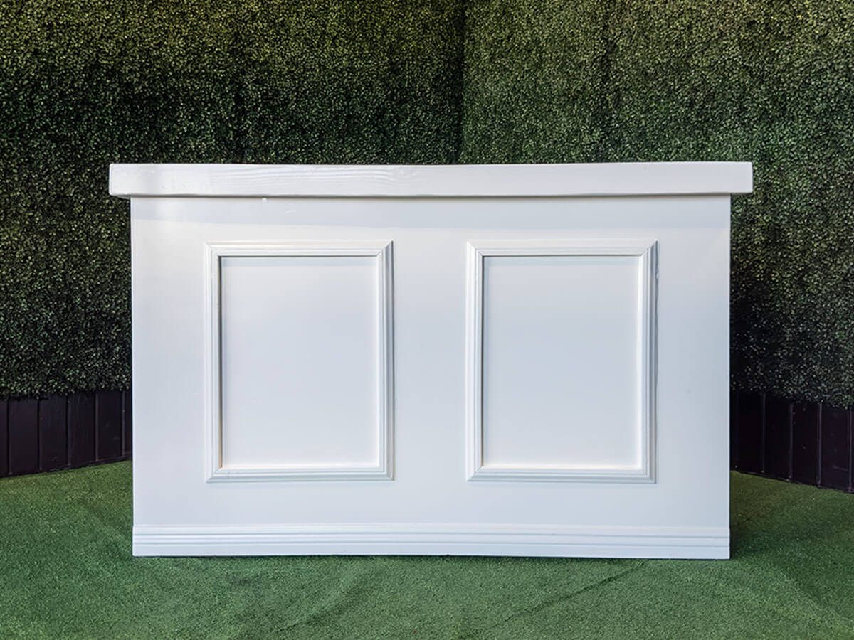Shown with optional Hampton Back Bar for an additional cost: https://lapartyrents.com/product/5-hampton-white-back-bar/
