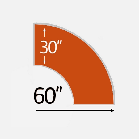 60″ radius x 30″ width. Placing four together would form a 10′ diameter circle with a 60″ space in the center.