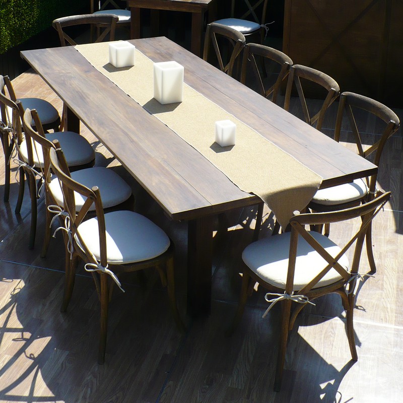 Vineyard Chairs, Burlap Table Runner, and Candles not included (available separately).