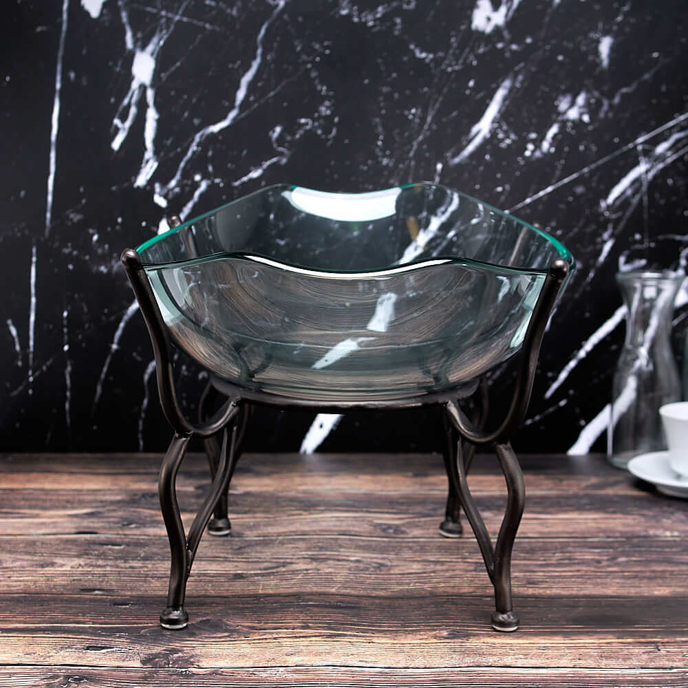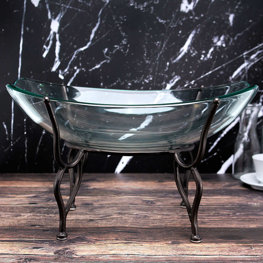 Oblong Glass Bowl w/ Wought Iron Stand