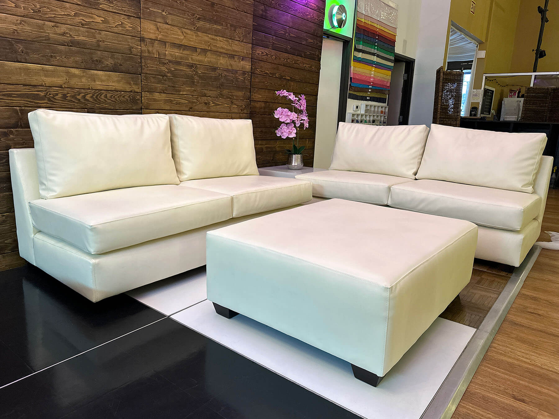 Simple Sofa (no arms/back) Off White Leather Modular quantity