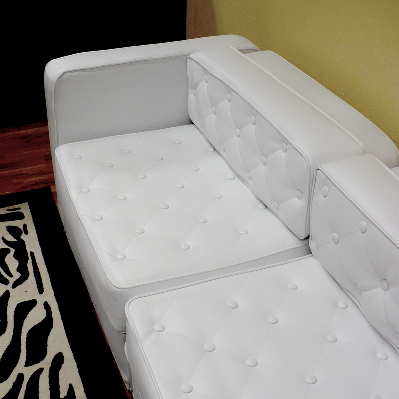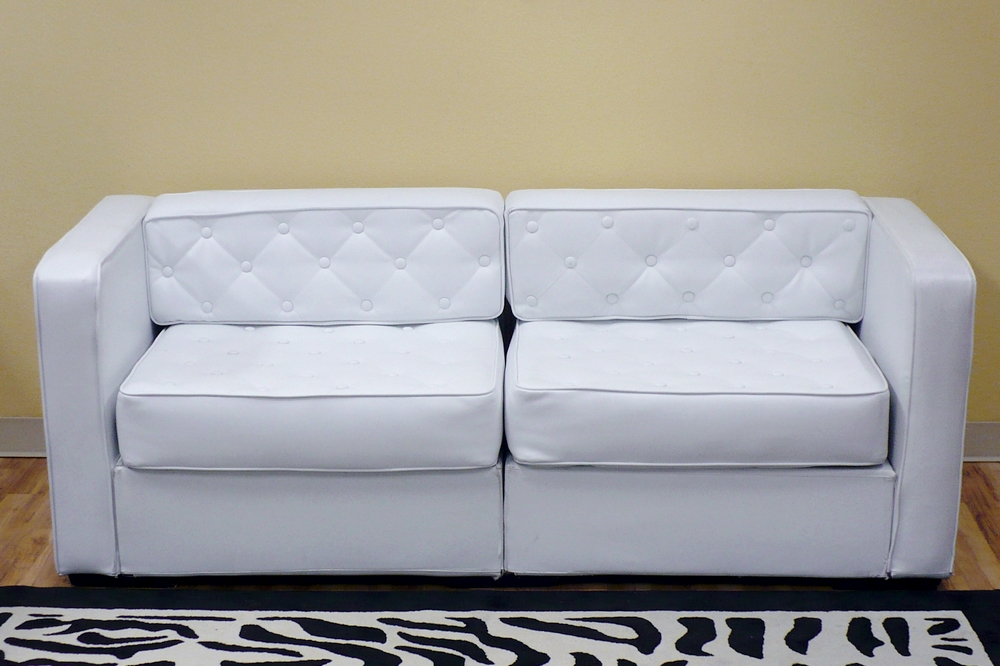 Small Sofa / Love Seat – White Tufted Leather